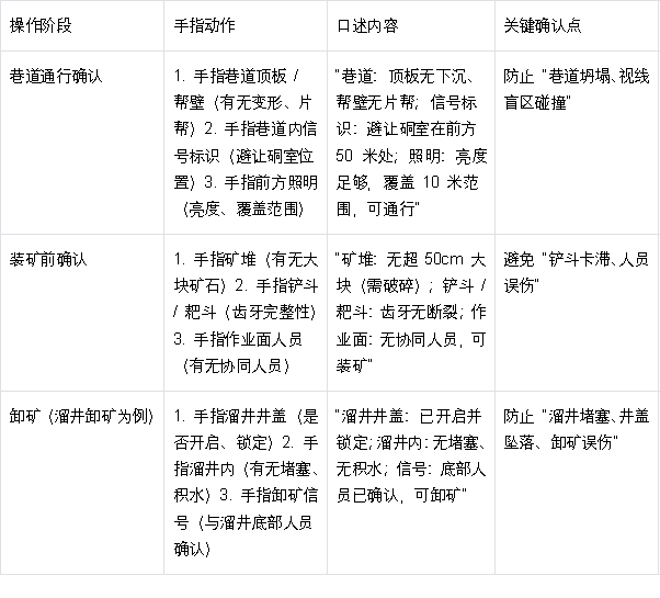 3.風(fēng)險適配:針對不同礦山(如金屬礦、非金屬礦)的特殊風(fēng)險(如金屬礦的高硫自燃、非金屬礦的粉塵爆炸),需補充專項手指口述內(nèi)容(如自燃點監(jiān)測、粉塵濃度實時確認)。